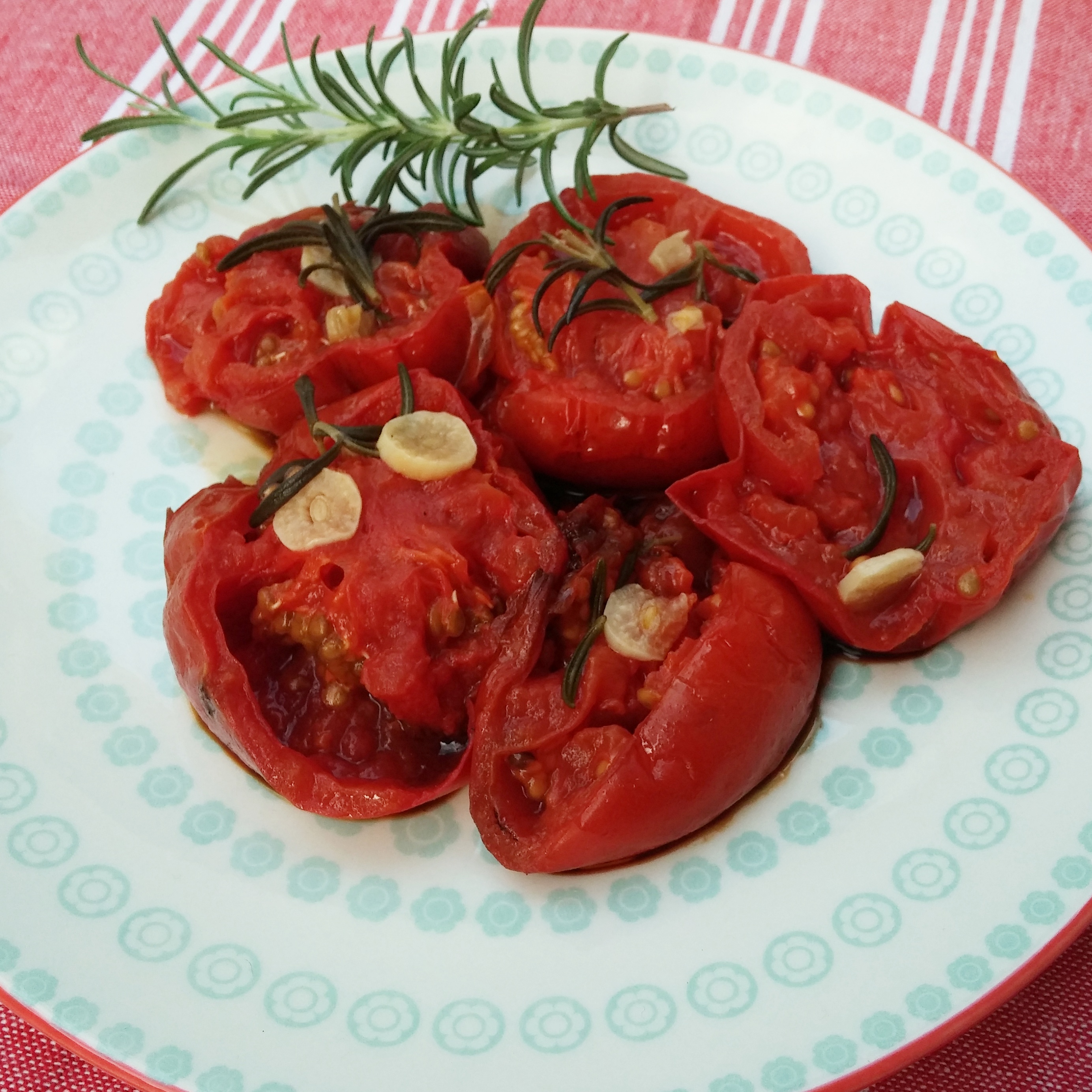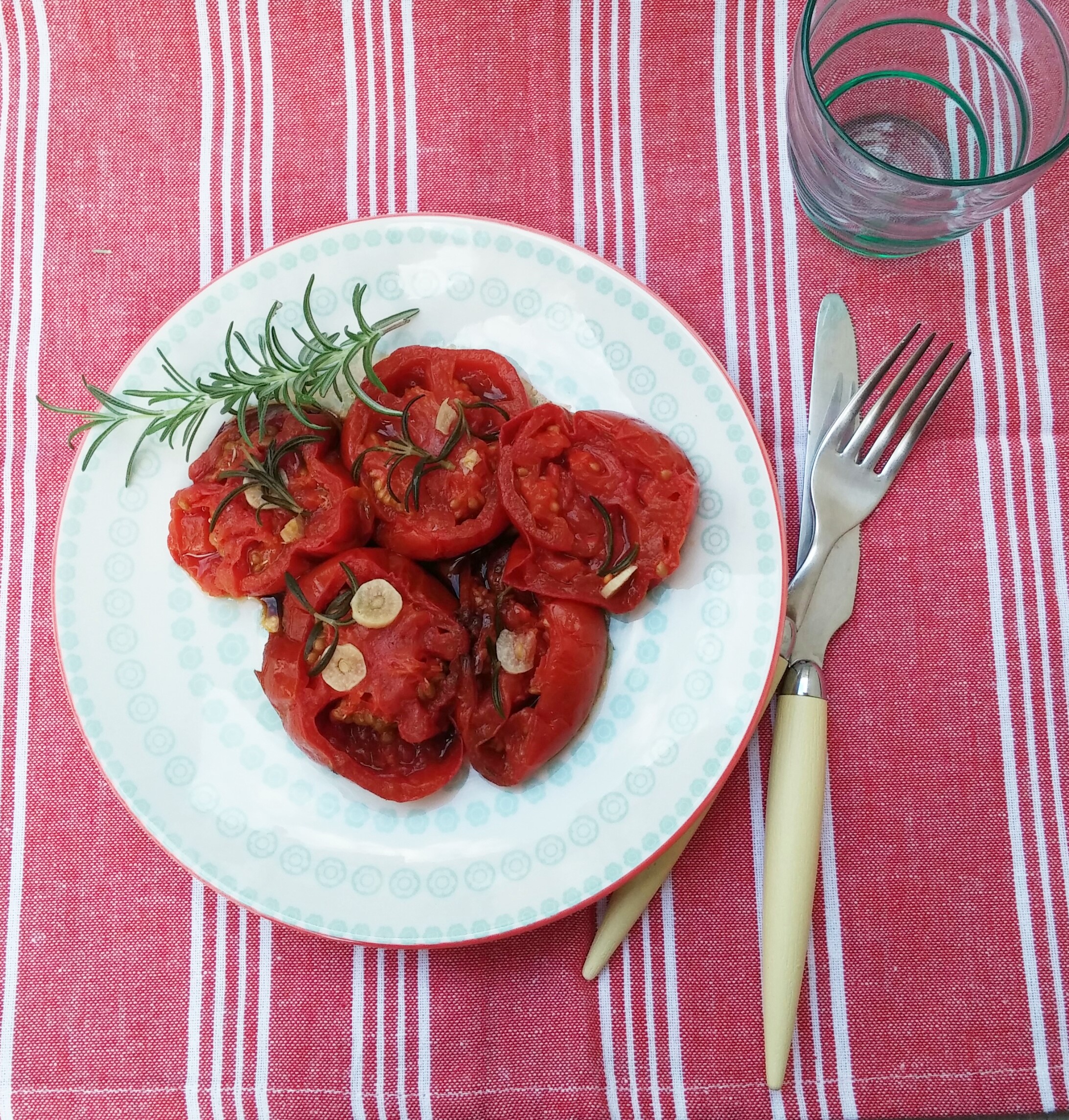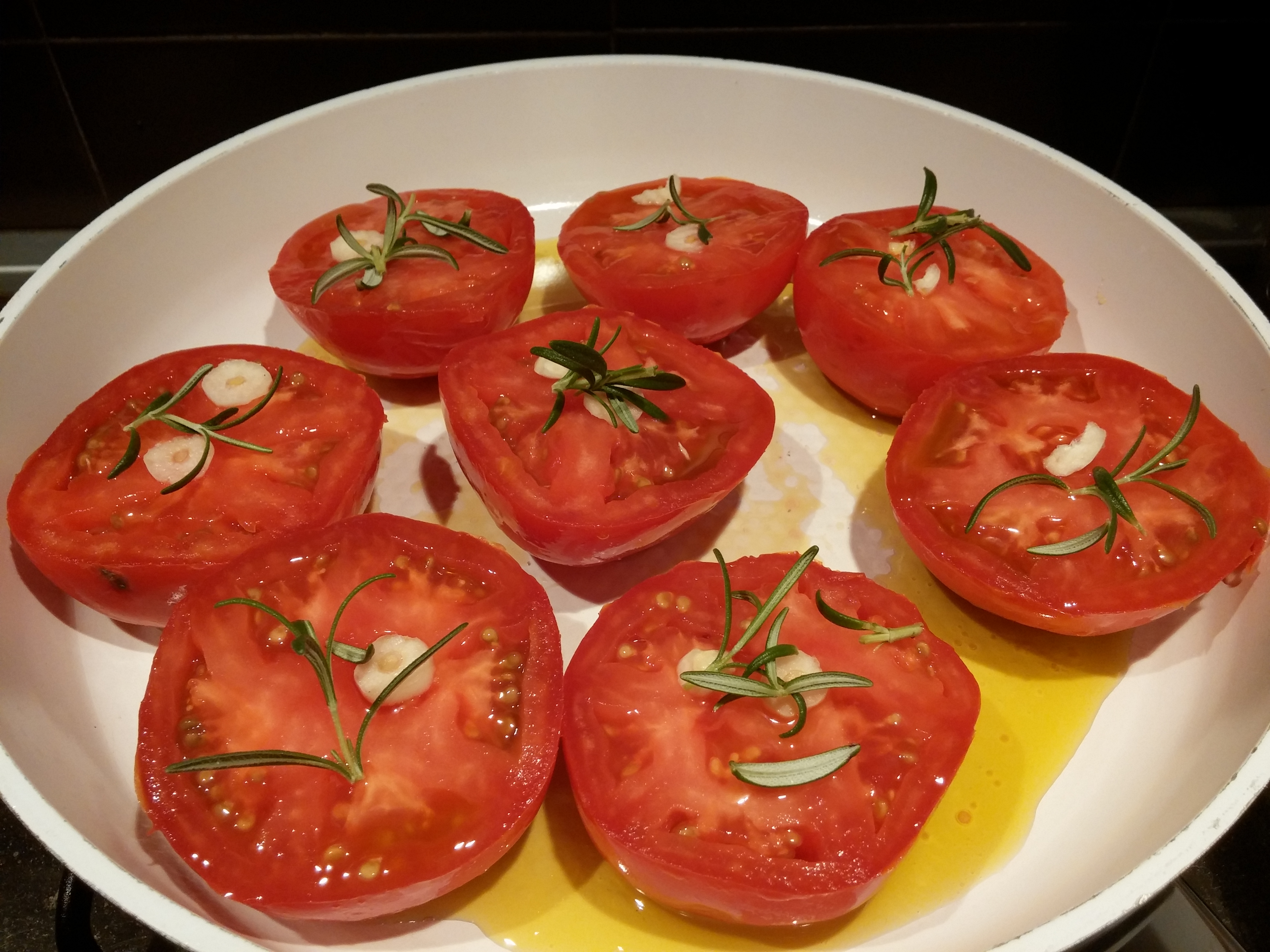 Torna il nostro appuntamento con il Back to basic! Oggi vi propongo una cena leggera e di stagione! Una ricetta che tutti possiamo fare per la sua semplicità, ma che può dare un tocco in più alle nostre pietanze se usato come contorno. Io, veramente, lo uso come piatto unico visto che potrei mangiarne a dozzine. Ne faccio scorta per quando la stagionalità non mi permetterà di gustarne di freschi. Vi presento i pomodori in padella o come li chiama mia mamma ( e non ho capito ancora capito se è un termine che esiste davvero) in porchetta. La cottura è una semplice tipo stufatura inizialmente, adatta a cuocere le verdure a bassa temperatura , ma costante, coperte, per permettere ai vapori rilasciati di cuocere la verdura stessa, in questo caso i pomodori. Dopodiché toglieremo il coperchio a far tirare un po’ il liquido ( non troppo altrimenti non sarà sufficiente per la scarpetta). Non preoccupatevi se il fondo della padella si scurirà, l’importante è che non si attacchino i pomodori. A prevenire ciò, comunque, ci sarà la buccia del pomodoro. I condimenti sono anche qui semplici, olio, aglio e rosmarino, ma potete sbizzarrirvi con odori a vostro piacimento. La lista della spesa oggi è davvero corta:
