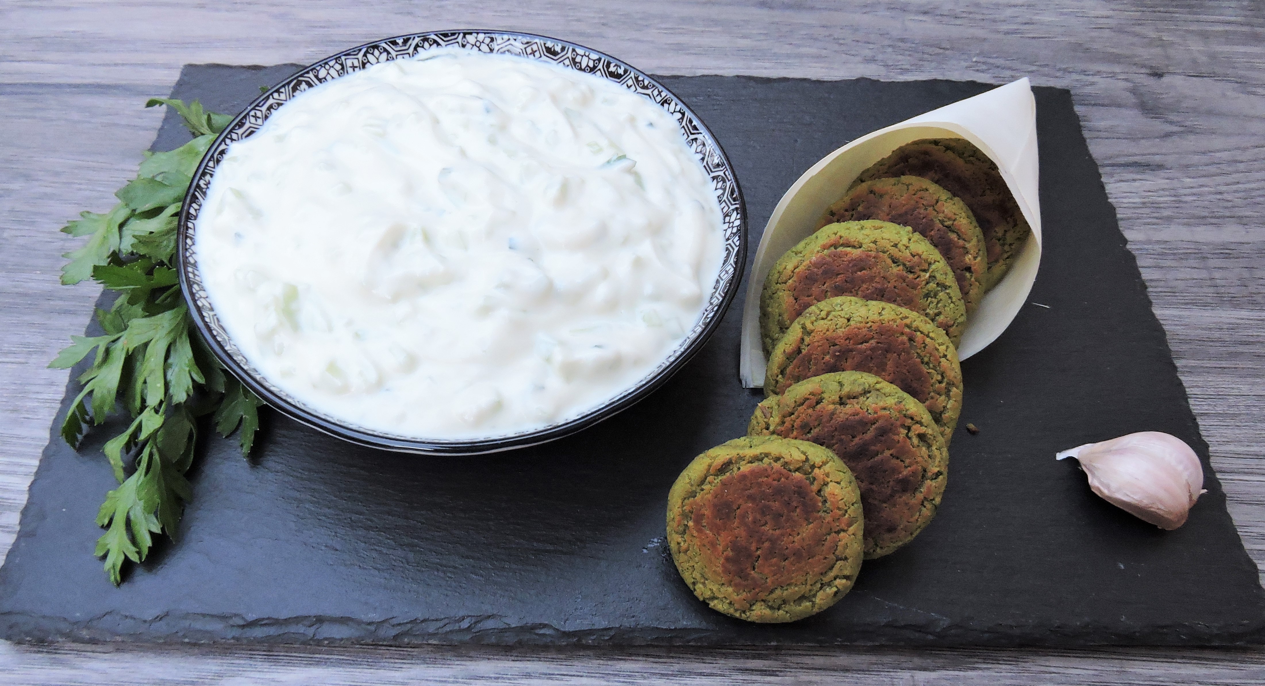 Falafel e Salsa Tzatziki.