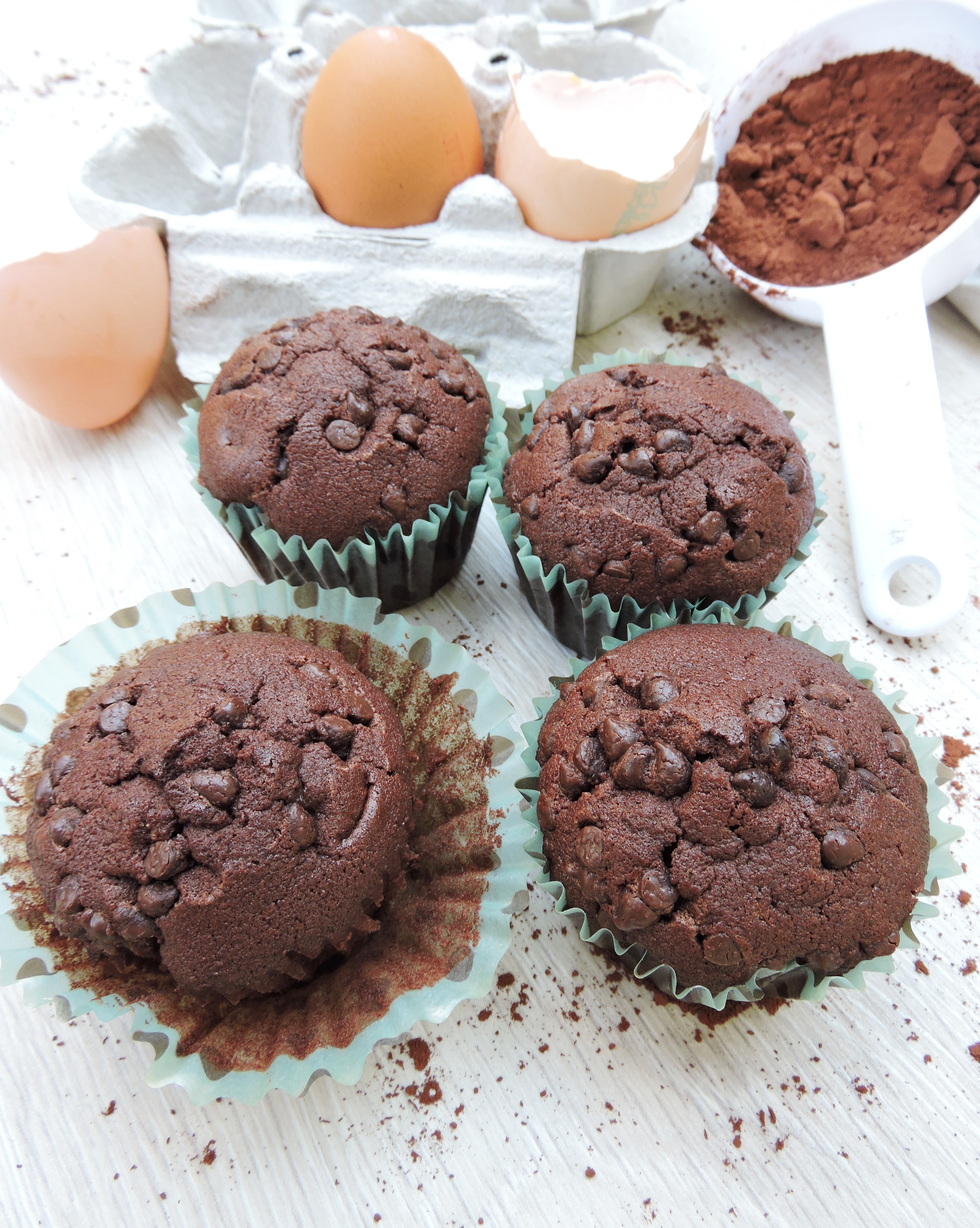 In questa mattina del primo giorno di Settembre mi sono voluta coccolare con dei dolcetti superbi e golosissimi, i muffin al doppio cioccolato! Ideali per la colazione (stamattina non hanno fatto in tempo a freddarsi che li abbiamo addentati) ma anche per una merenda dei più piccoli (ma non disdegneranno nemmeno i più grandi). Non so voi, ma io adoro questi dolcetti finger food. Li amo in ogni versione, infatti questa sarà solo la prima di tante ricette di muffin che condividerò. Dal mio noto amore per gli States non poteva essere diversamente. Nel nostro girovagare in America ne abbiamo trovati di ogni tipo e di ogni gusto, delle famose bakery, da Magnolia Bakery a Sprinkles Cupcake passando per Georgetown Cupcake) a locali artigianali e sconosciuti, con gusti stagionali o i classici. Oggi vi presento un super classico che mette d’accordo tutti i muffin al doppio cioccolato. Certo qui, per attenerci ai gusti anglosassoni, dobbiamo armarci di burro, ma vi giuro è per una buona causa! Iniziamo con gli ingredienti di cui abbiamo bisogno: