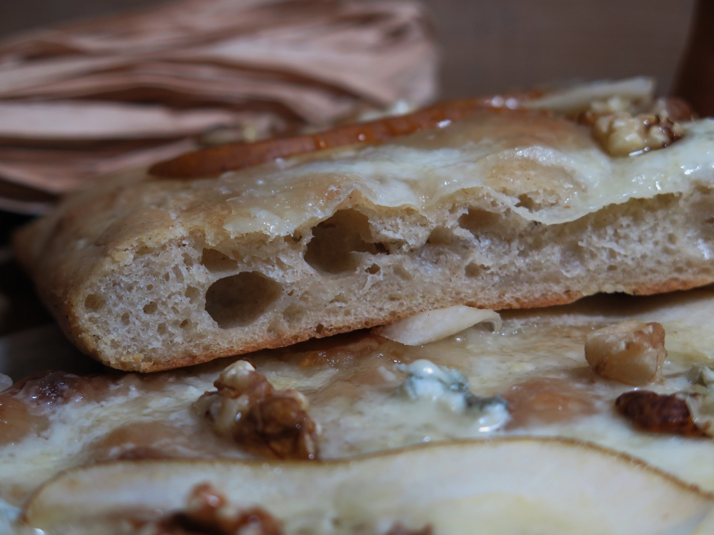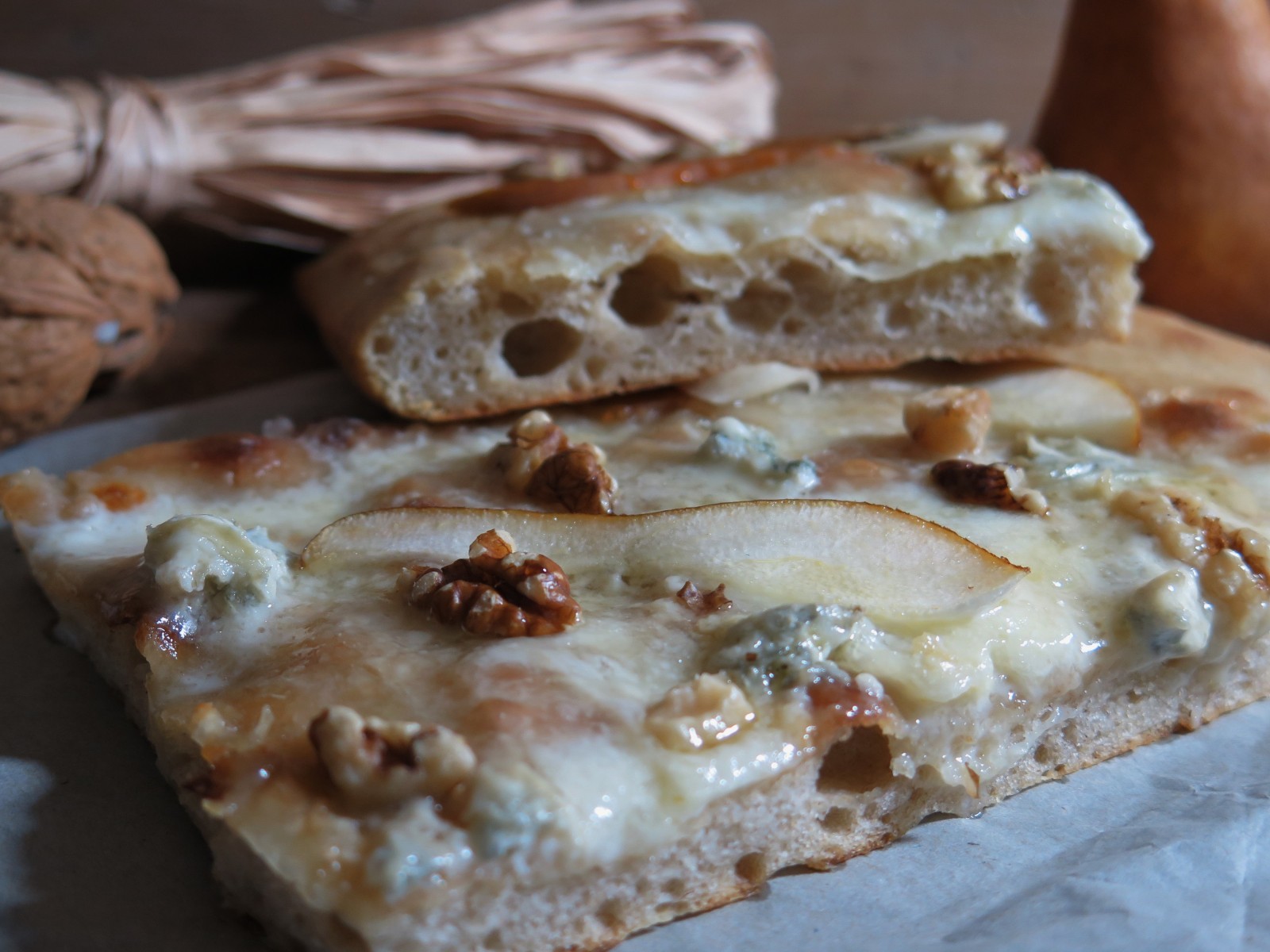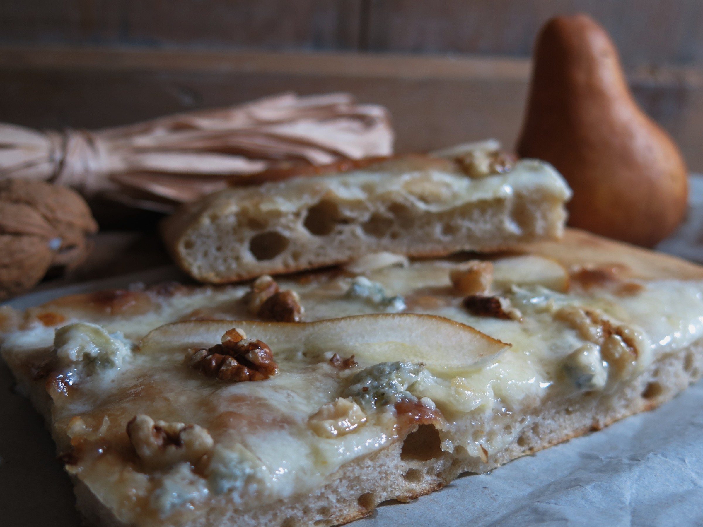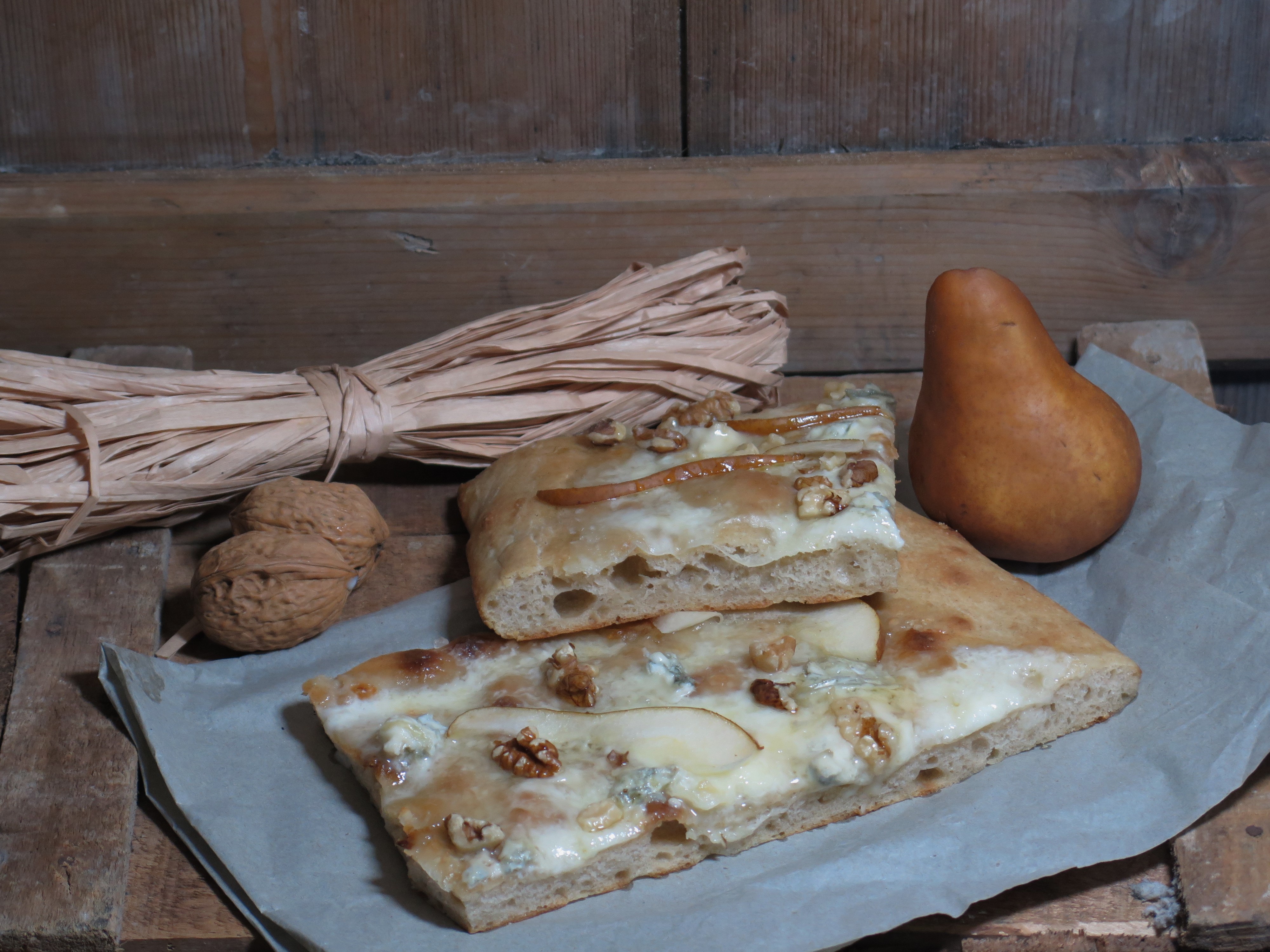 la focaccia gorgonzola, pere e noci