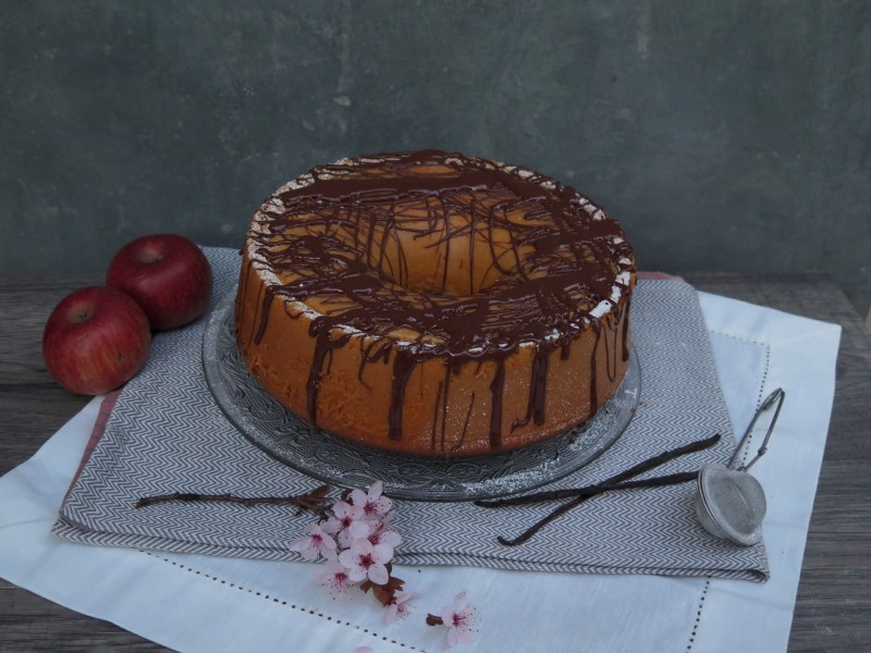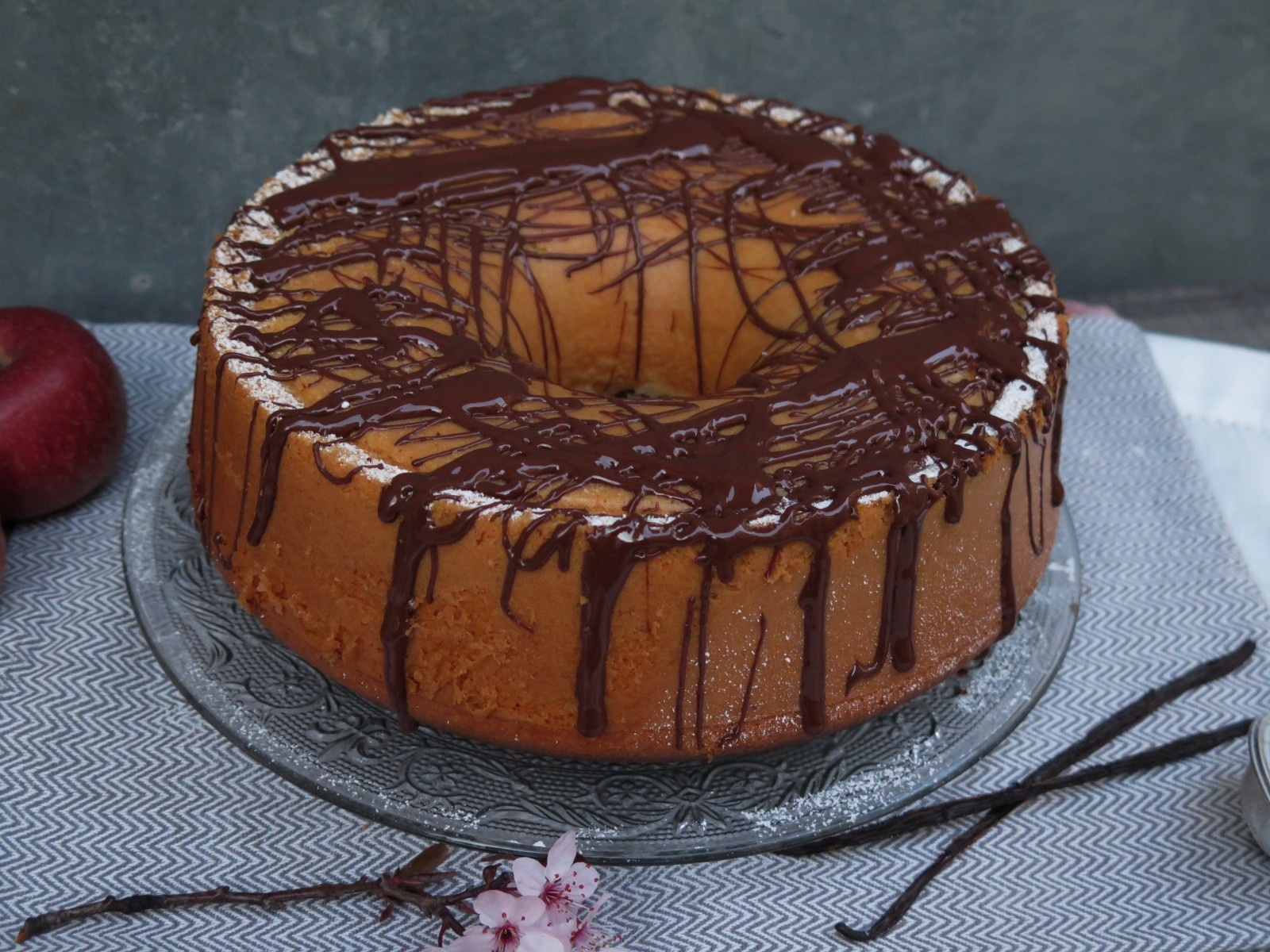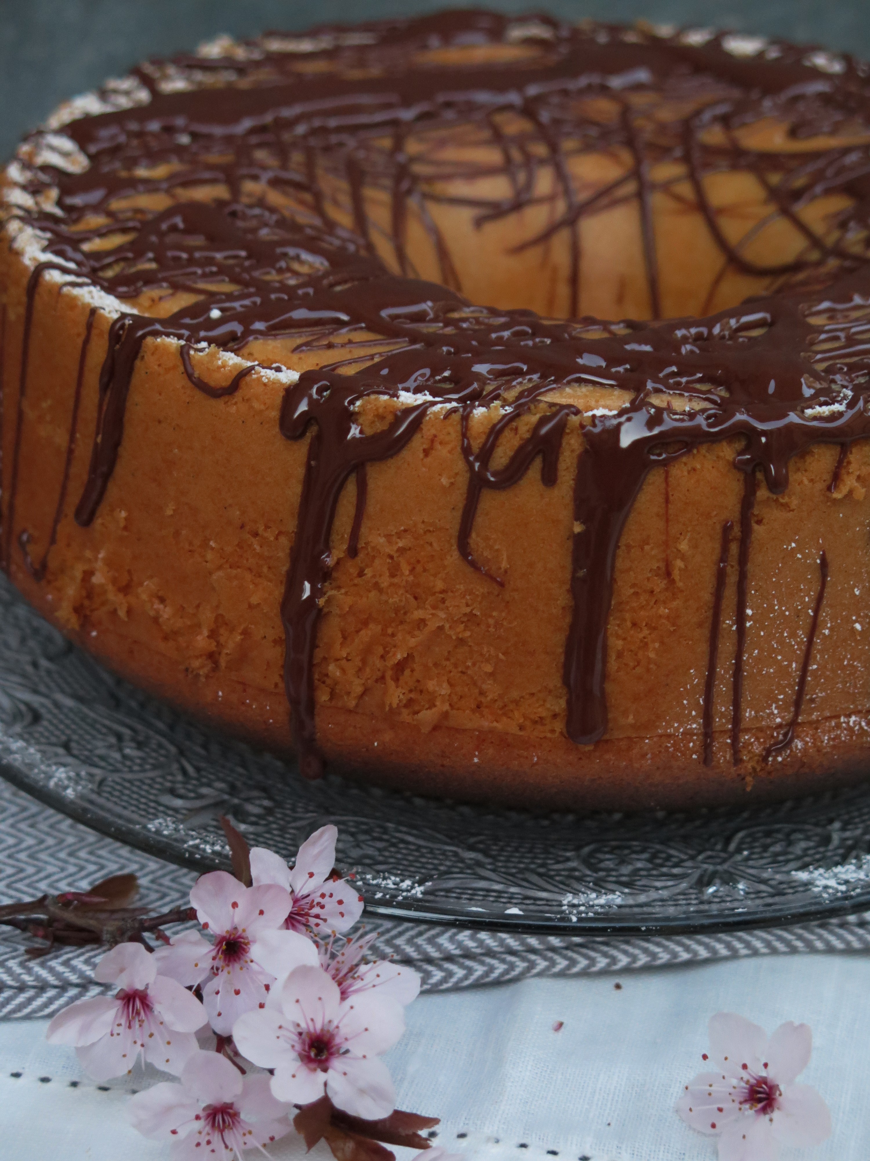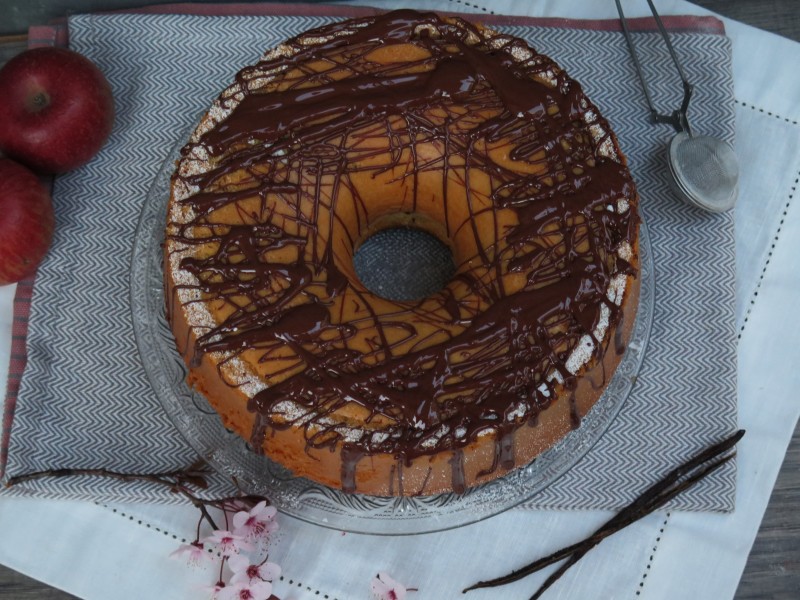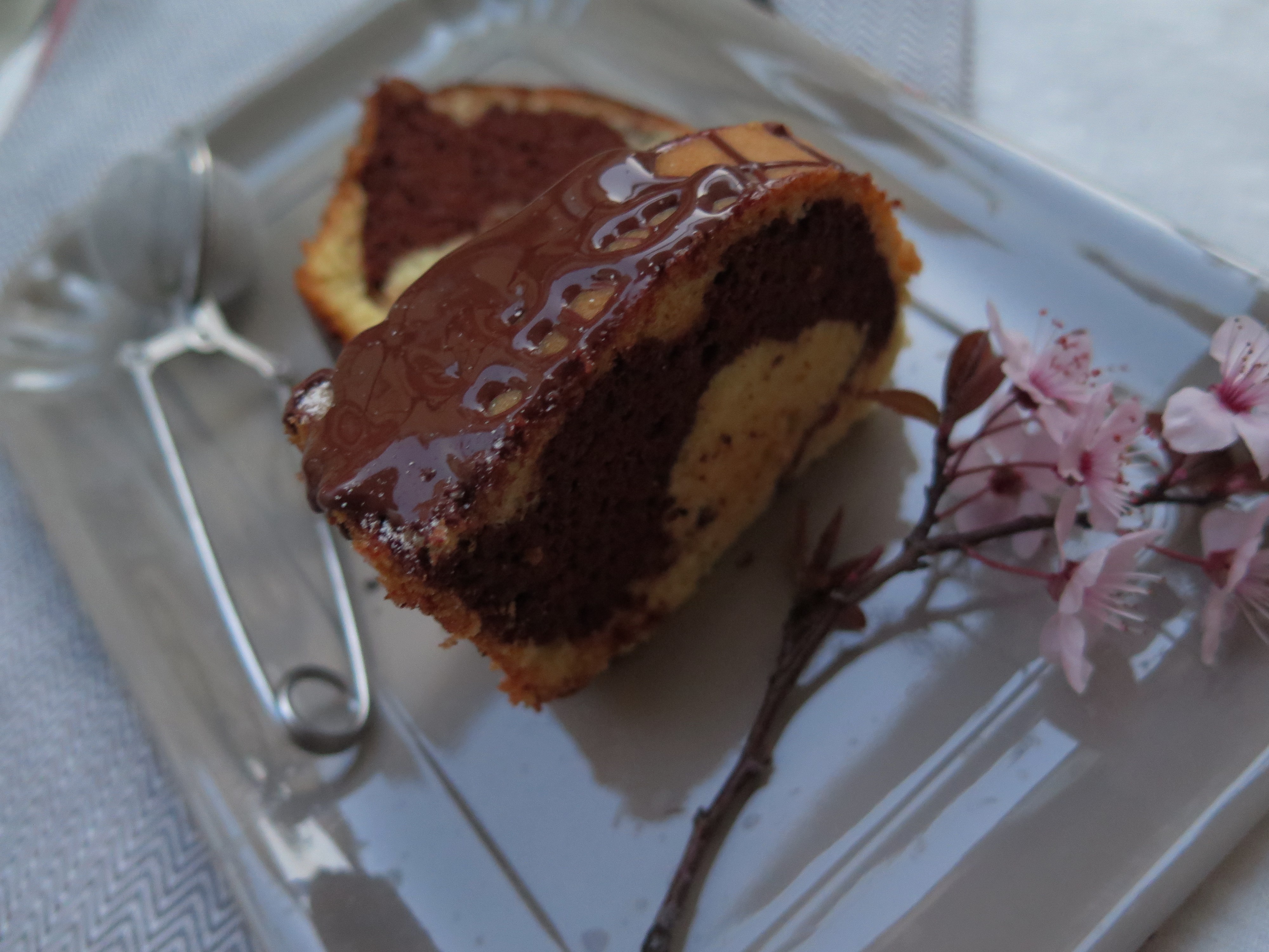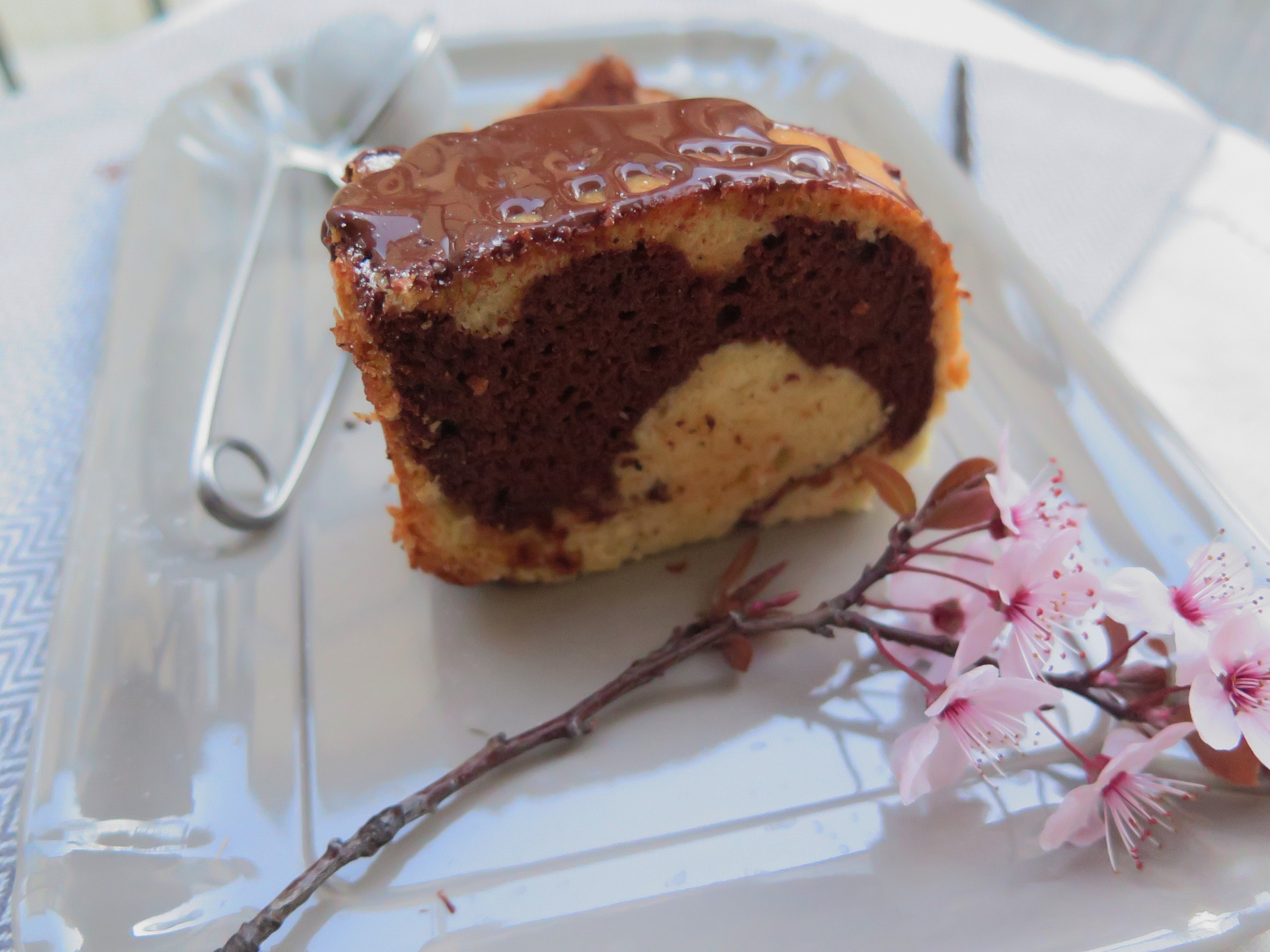 In una ciotola uniamo il cacao, l’olio, l’acqua e lo zucchero. Mettiamo sul fuoco o nel microonde per far sciogliere il cacao e lo zucchero e ottenere una consistenza liscia. A parte setacciamo la farina, lo zucchero, il lievito e il sale. Spendo due parole per questa fase, io non amo setacciare ma qui è davvero fondamentale per un’ottimale riuscita della ricetta, quindi, come me, armatevi di pazienza. In una ciotola unite i rossi con l’olio, l’acqua fredda e la polpa della vaniglia, mescolare bene come ad emulsionare leggermente e uniamo, lentamente e poco alla volta, la farina setacciata con il resto. Montiamo i bianchi con il cremor tartaro fino a veder formare delle punte, quindi a neve ben ferma e aggiungiamo al restante composto, dal basso verso l’alto. Prendete 1/3 di questo composto e aggiungiamo il composto di cacao. Avremo ora i nostri impasti pronti. Lo stampo non va unto o imburranto. Alterniamo la massa bianca con quella al cioccolato e mettiamo in forno a 160° per 60/65 minuti. Fate raffreddare capovolgendola almeno un’oretta. Potete gustarla a colazione o accompagnarla con un thè o crema. Io l’ho guarnita con del cioccolato fondente fuso.