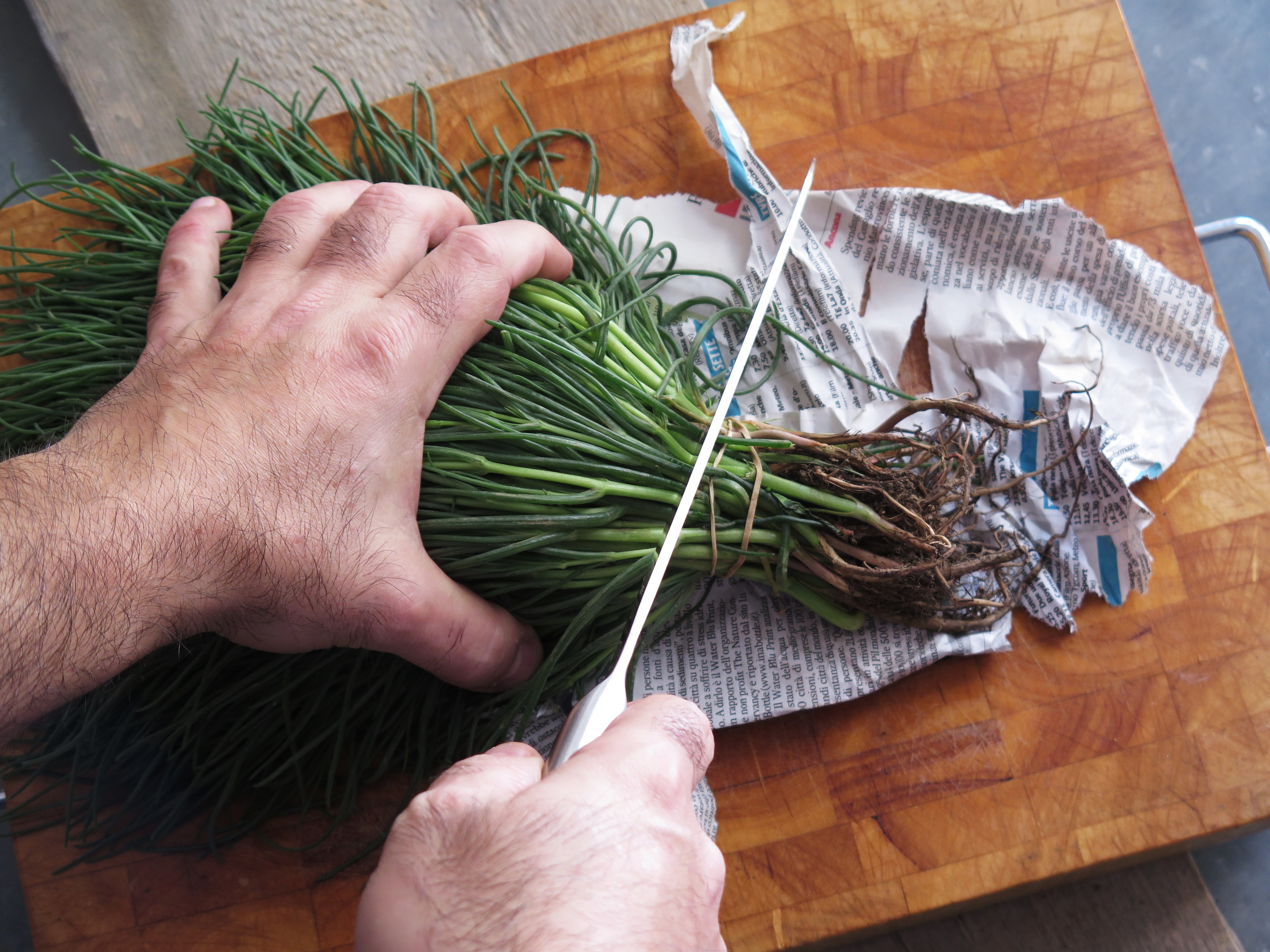 - Tagliuzziamo 3/4 degli agretti, possiamo fare questa operazione anche con le mani.
