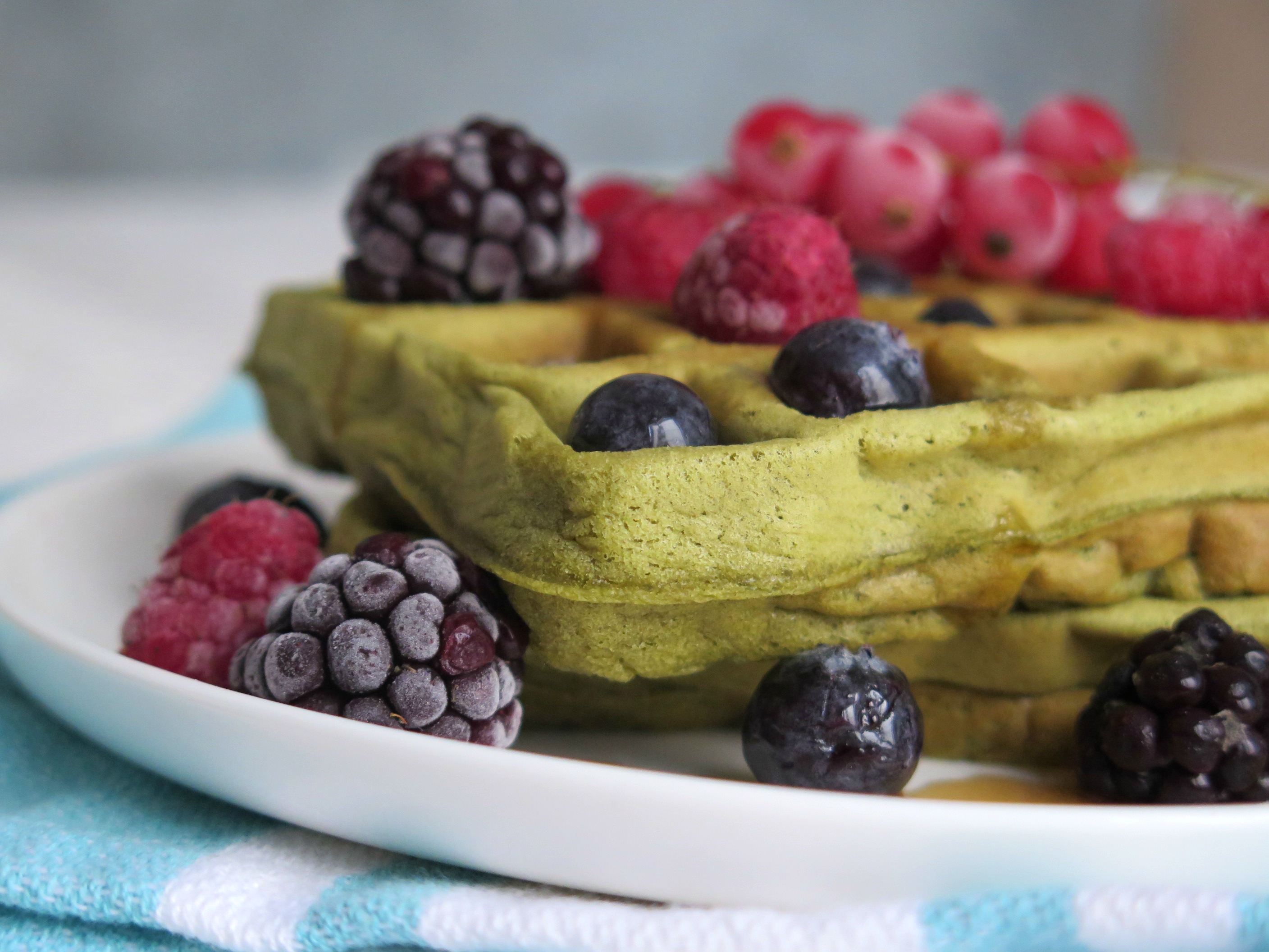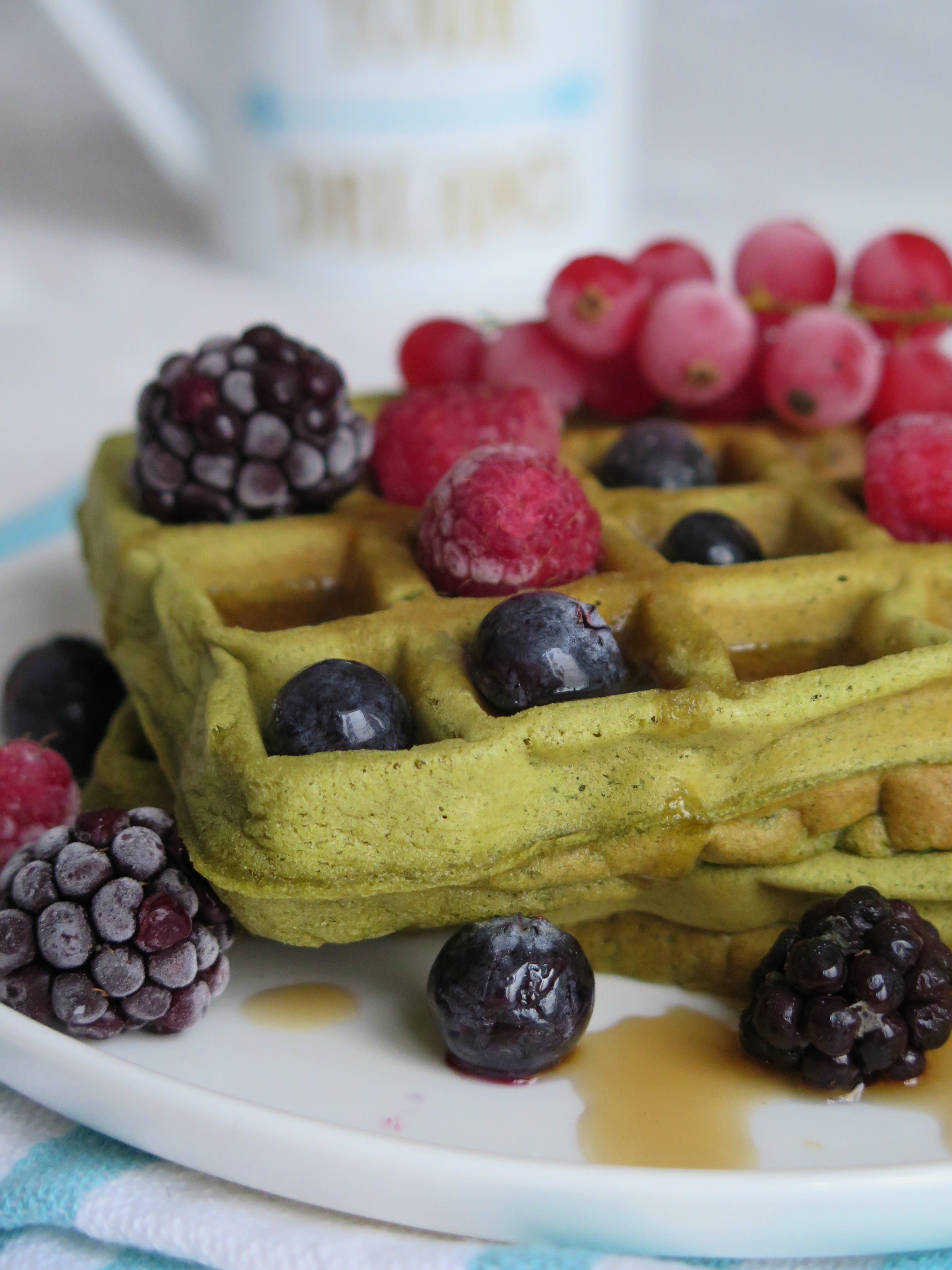 Una versione alternativa dei miei waffle tradizionali, usando il mio amato tè matcha. Questa polverina verde che regala aromi fantastici ha reso la mattina anche colorata! Inondati di sciroppo d’acero e frutti di bosco i miei waffle in versione vegan sono una nuvola! Provateli e fatemi sapere! Se l’ingrediente di oggi vi ha incuriosito provate anche la torta al tè matcha.