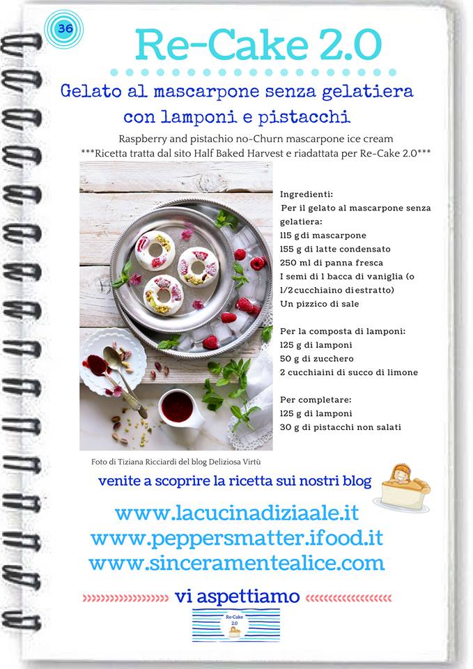 Eccomi dopo un bel pò di silenzio ma non de tutto alla fine. Se avete seguito la mia pagina Facebook spero che abbiate partecipato al primo giveaway di Forchetta e Pennello per il traguardo dei 2000 followers! Sono felicissima che ci sia tanta gente che ogni giorno mi regala l’emozione di vivere questo mio piccolo, grande sogno! Ieri tra l’altro, giorno dell’estrazione era anche il compli-blog! Ebbene sì, il tempo passa e Forchetta e Pennello arriva a 3 anni di attività! Festeggio con la ricetta della ReCake, un goloso gelato al mascarpone e lamponi senza gelatiera, la risposta al caldo che Agosto ci sta regalando!