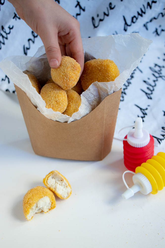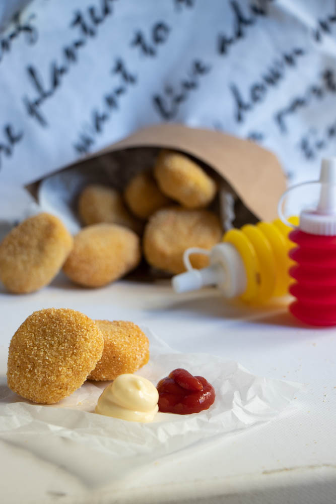 - Una volta pronti tutti i nuggets, potete scegliere se farle fritte o al forno.