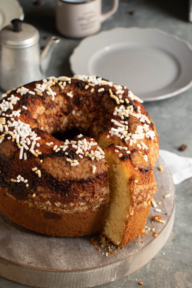 - Versare l’impasto in uno stampo da ciambella da 22 cm