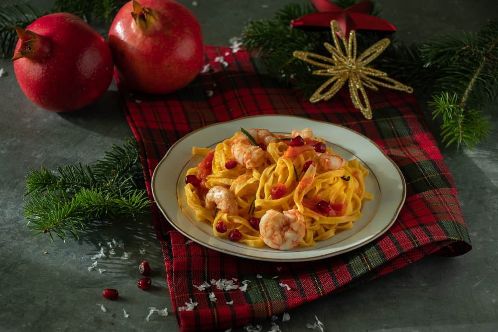 Tagliatelle mazzancolle e melograno