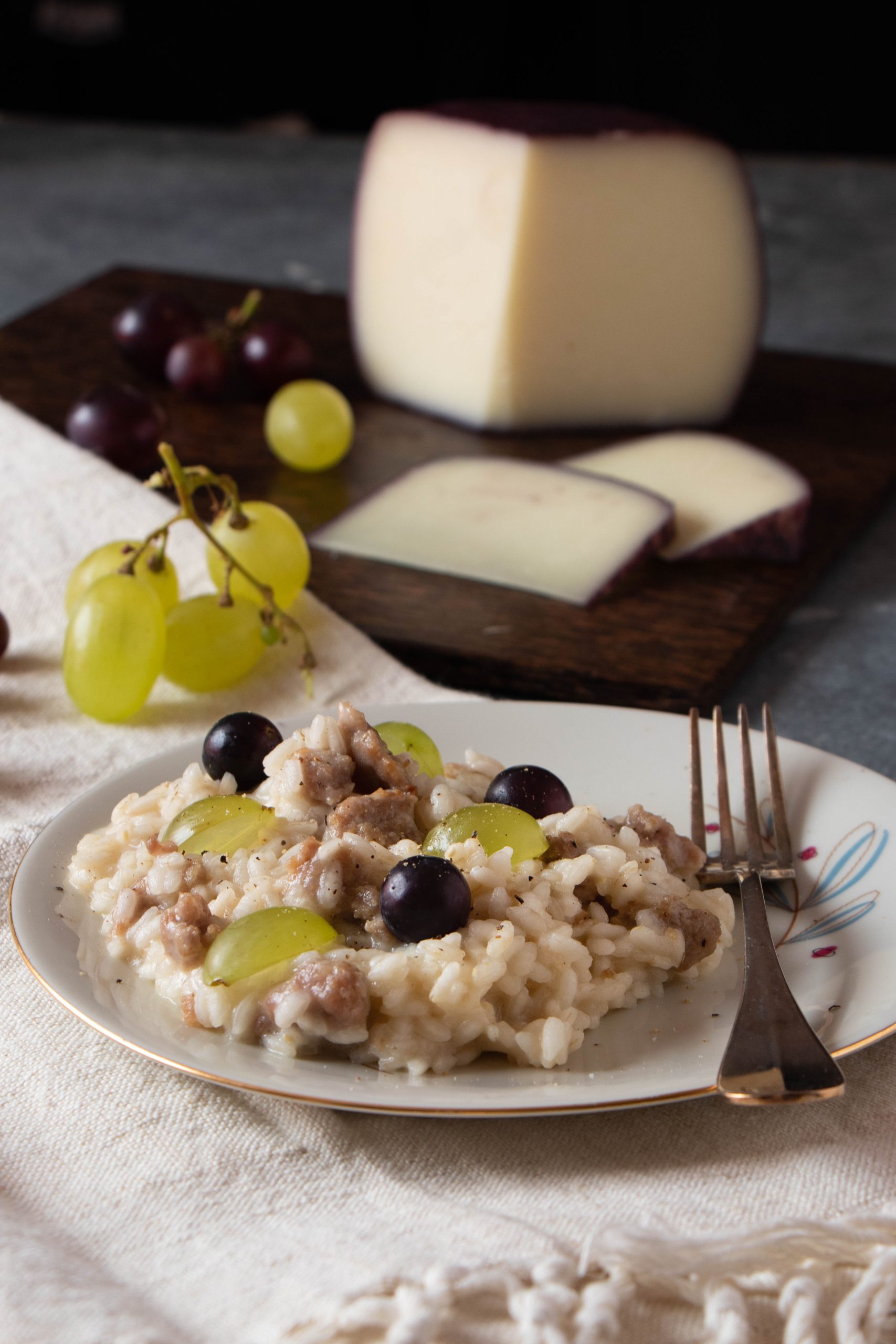 Risotto salsiccia, pecorino e uva