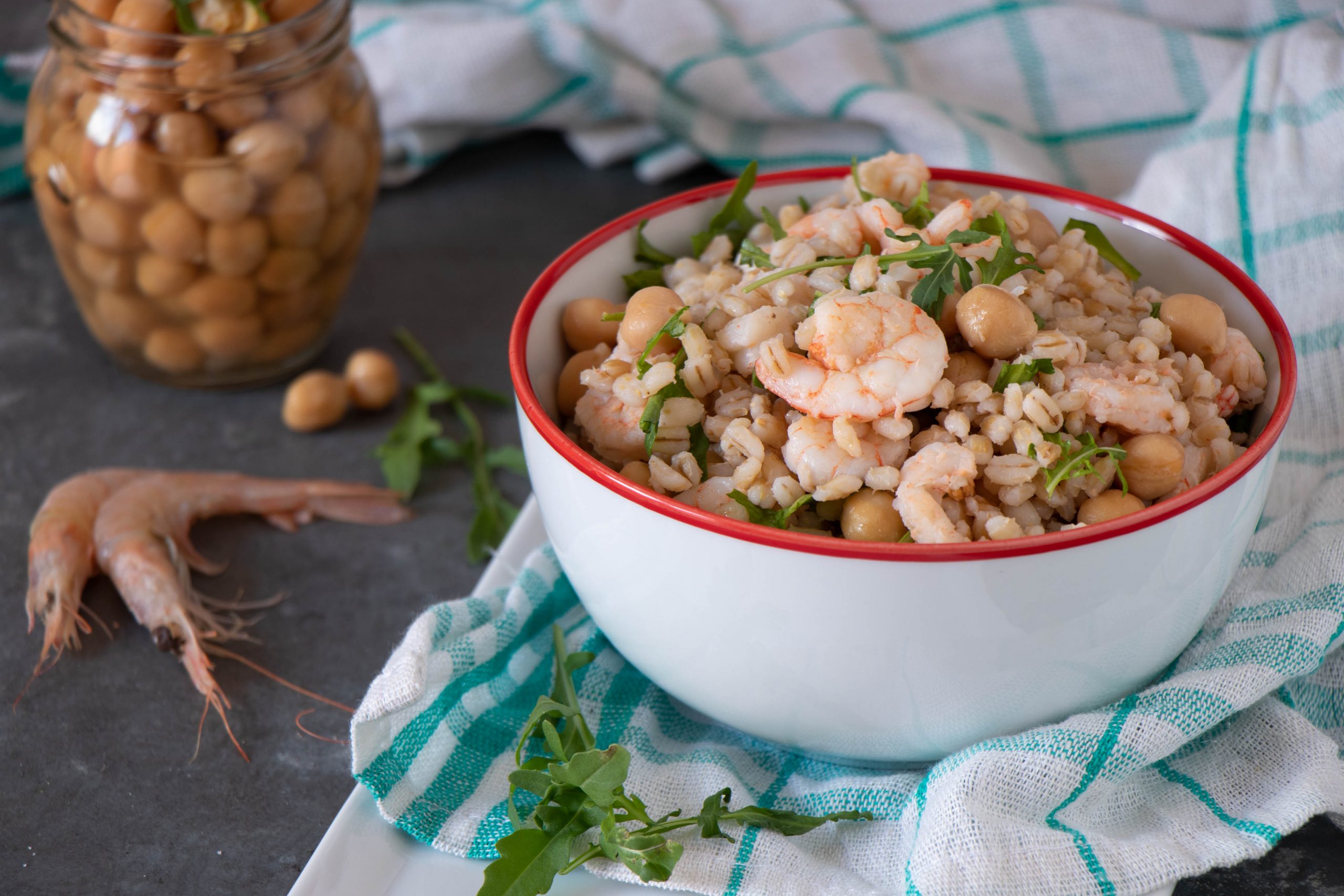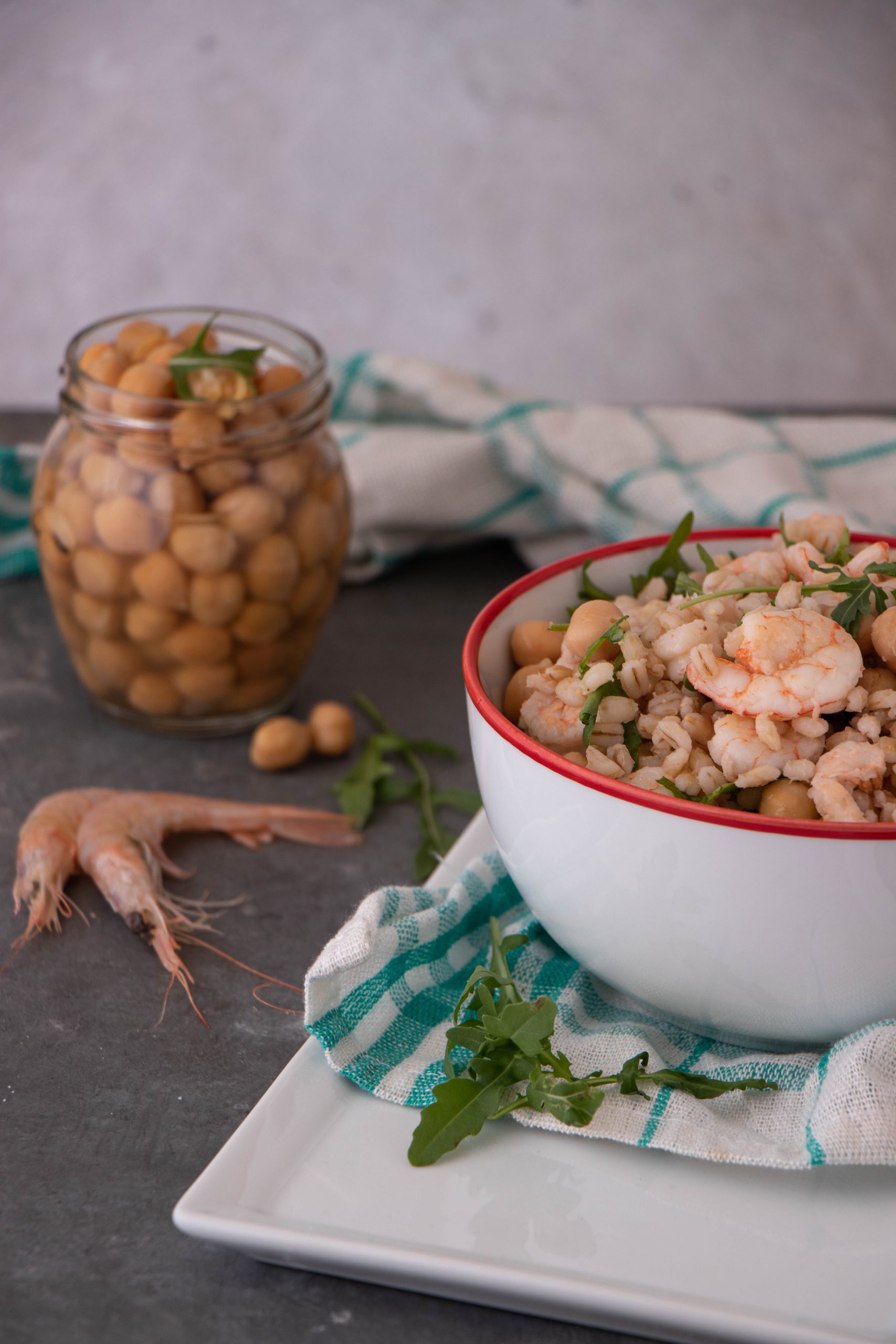 Insalata di farro, ceci e gamberetti rosa dell’adriatico