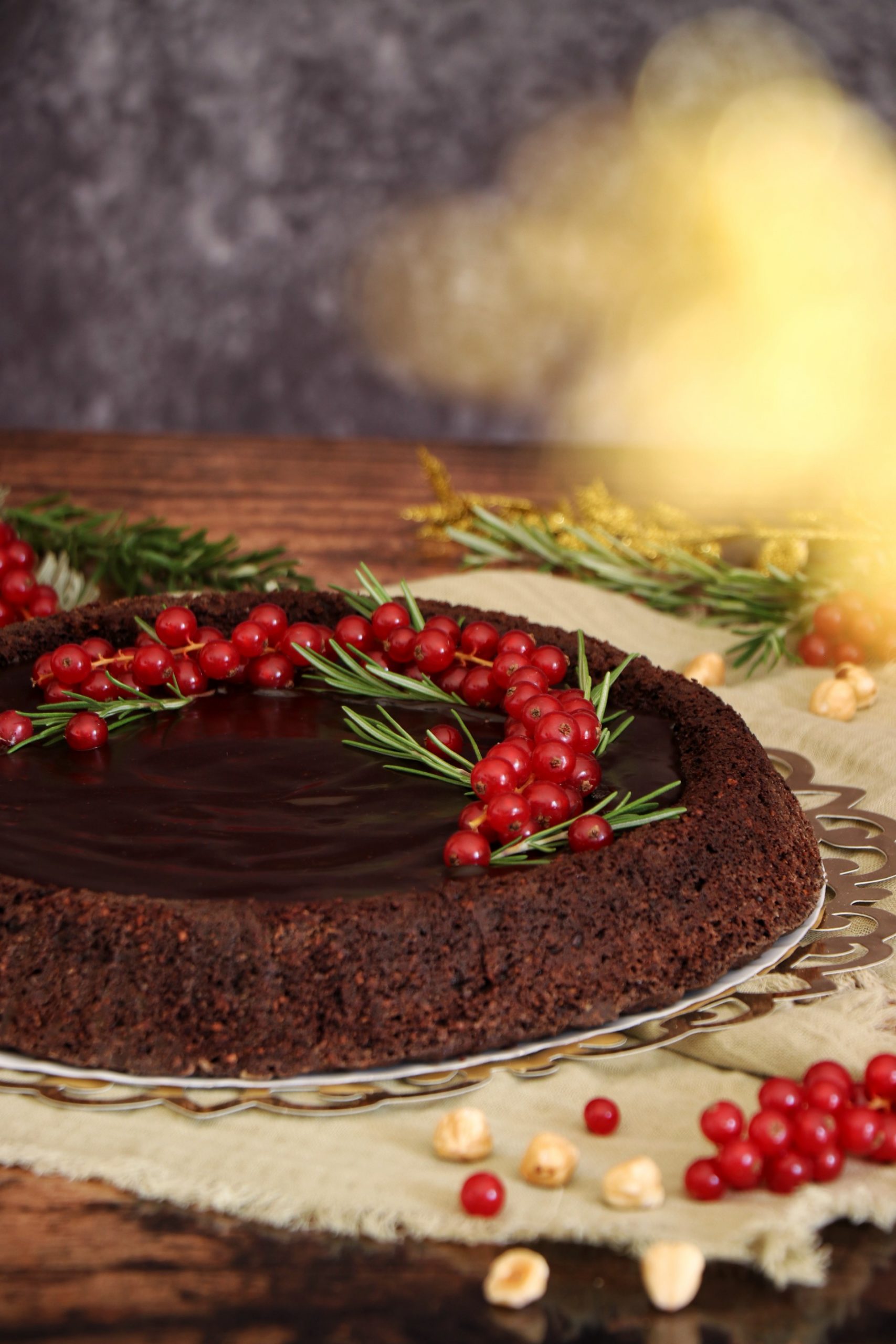 Io ho creato una versione con lo stampo per la crostata morbida, così da avere una superficie in cui ho colato una ganache al cioccolato fondente e decorata come una ghirlanda natalizia.